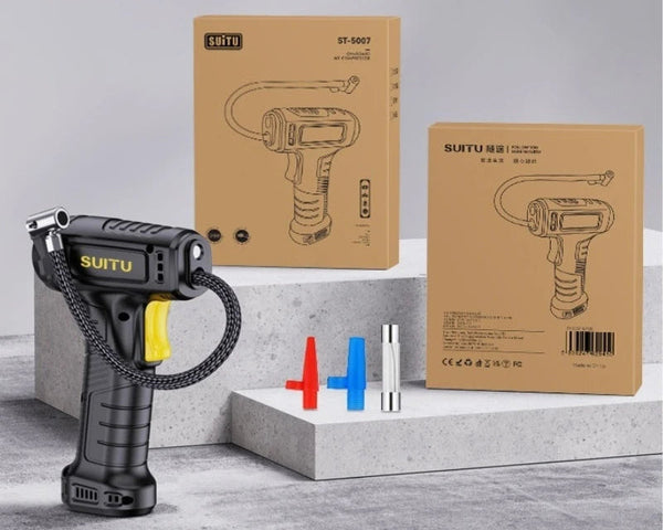 Compresorul auto portabil îți asigură călătorii fără griji, menținând presiunea optimă a anvelopelor în orice situație.